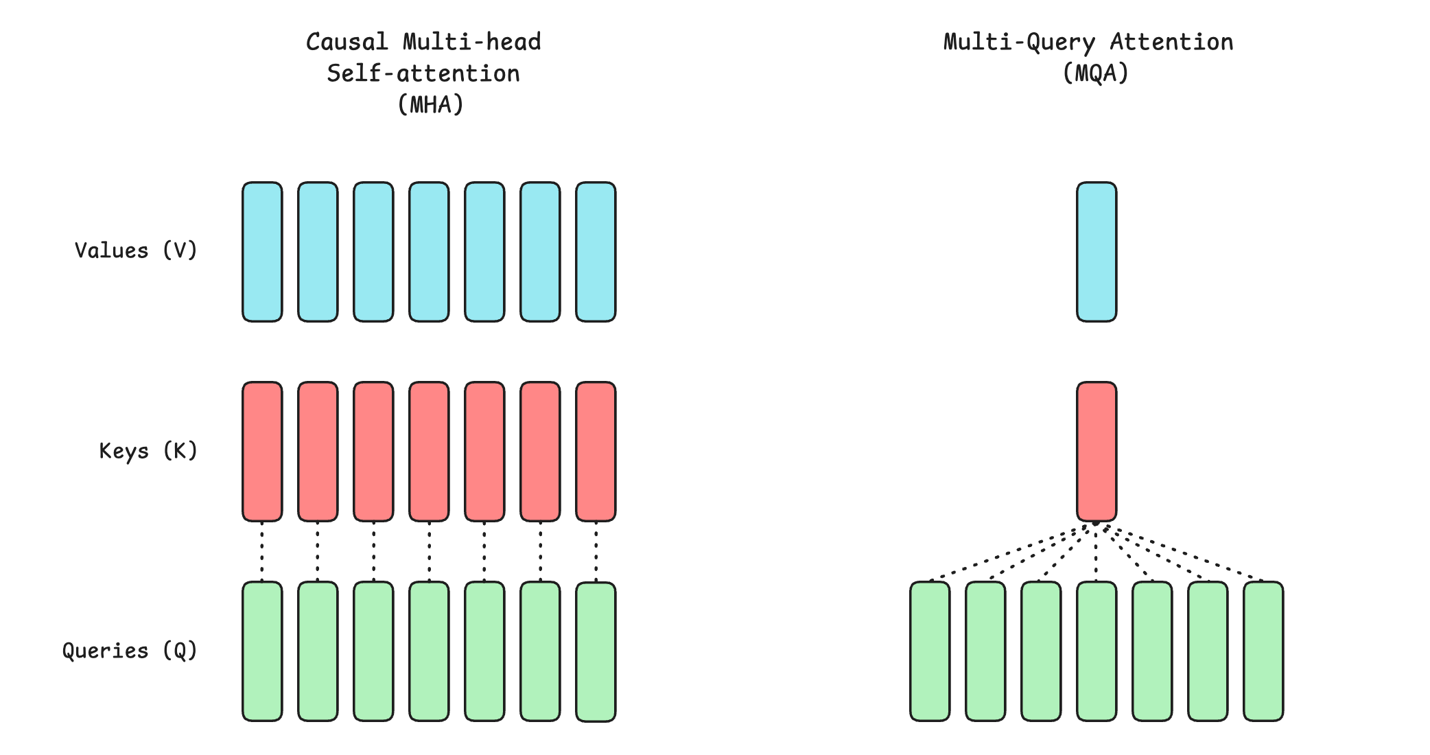 return outputMQA vs. MHA Visualised