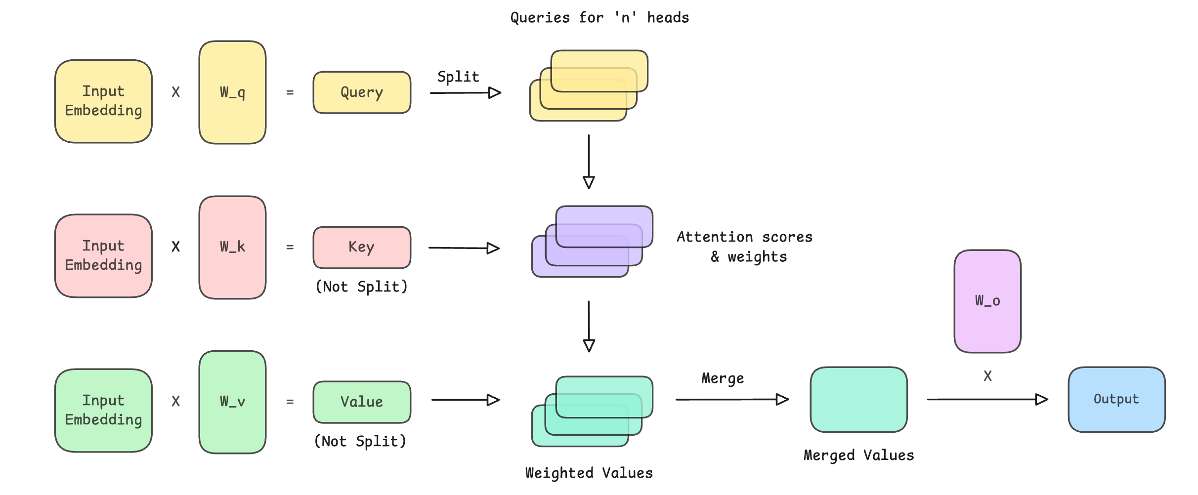 A final output projection matrix produces the layer’s output