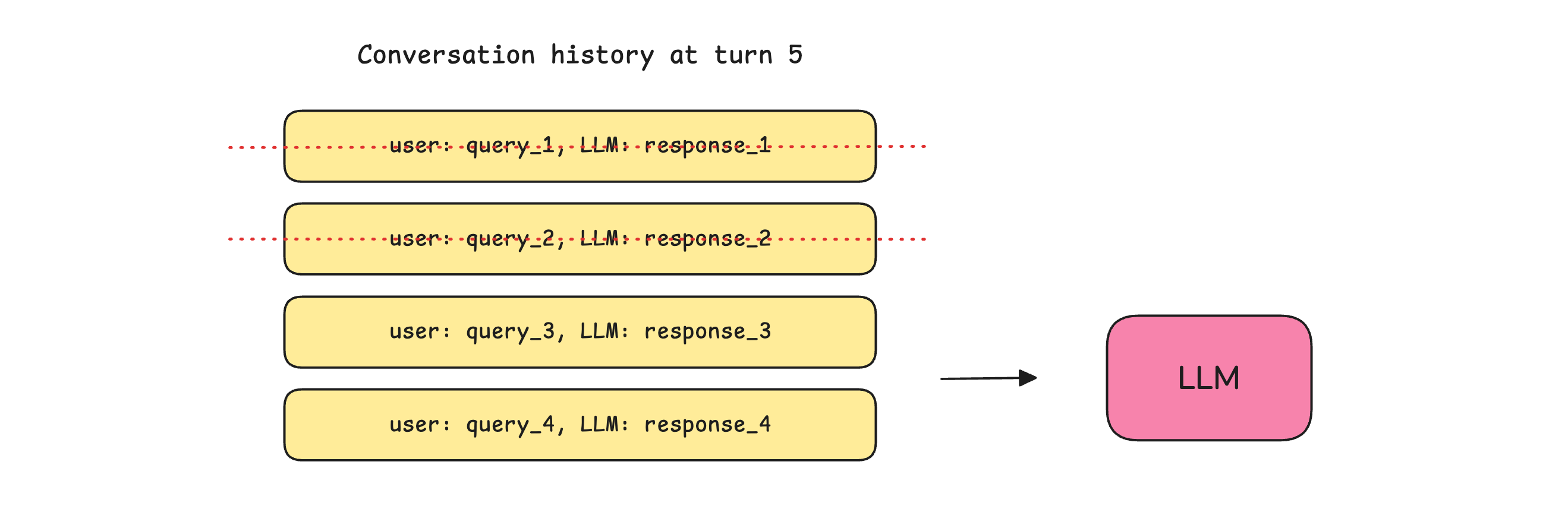 Trimming: Where only a certain number of the most recent conversations are kept, and the previous ones are discarded before passing to an LLM at every turn.