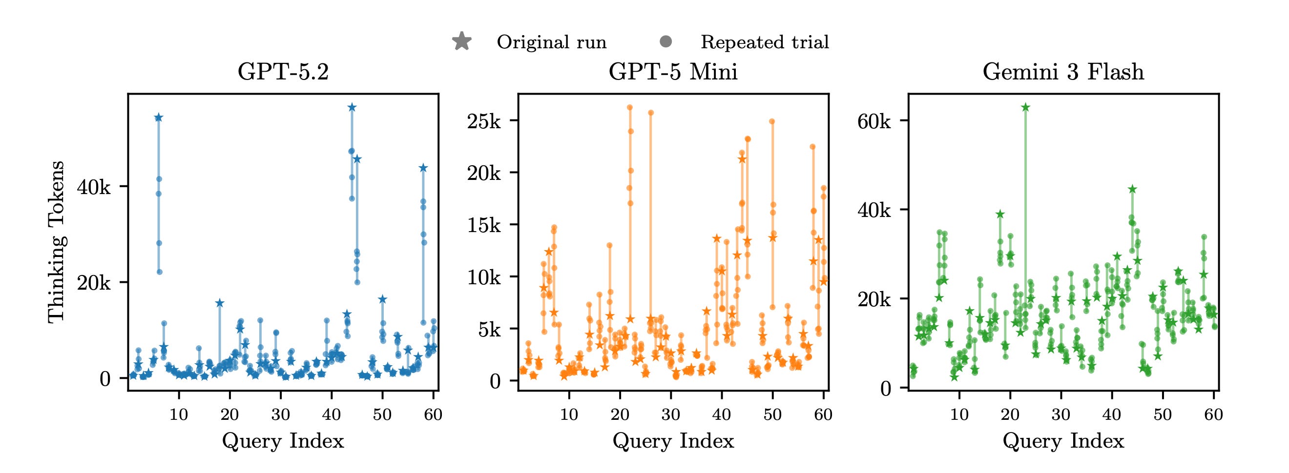 Even the same model can produce largely different numbers of tokens in different runs for the same query/ task