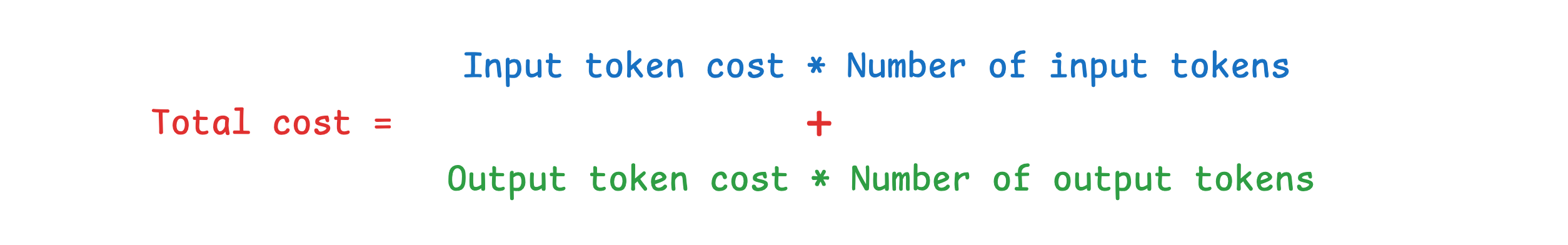 For a given query, the cost is the sum of the unit input token and output token prices weighted by the number of input and output tokens, respectively.