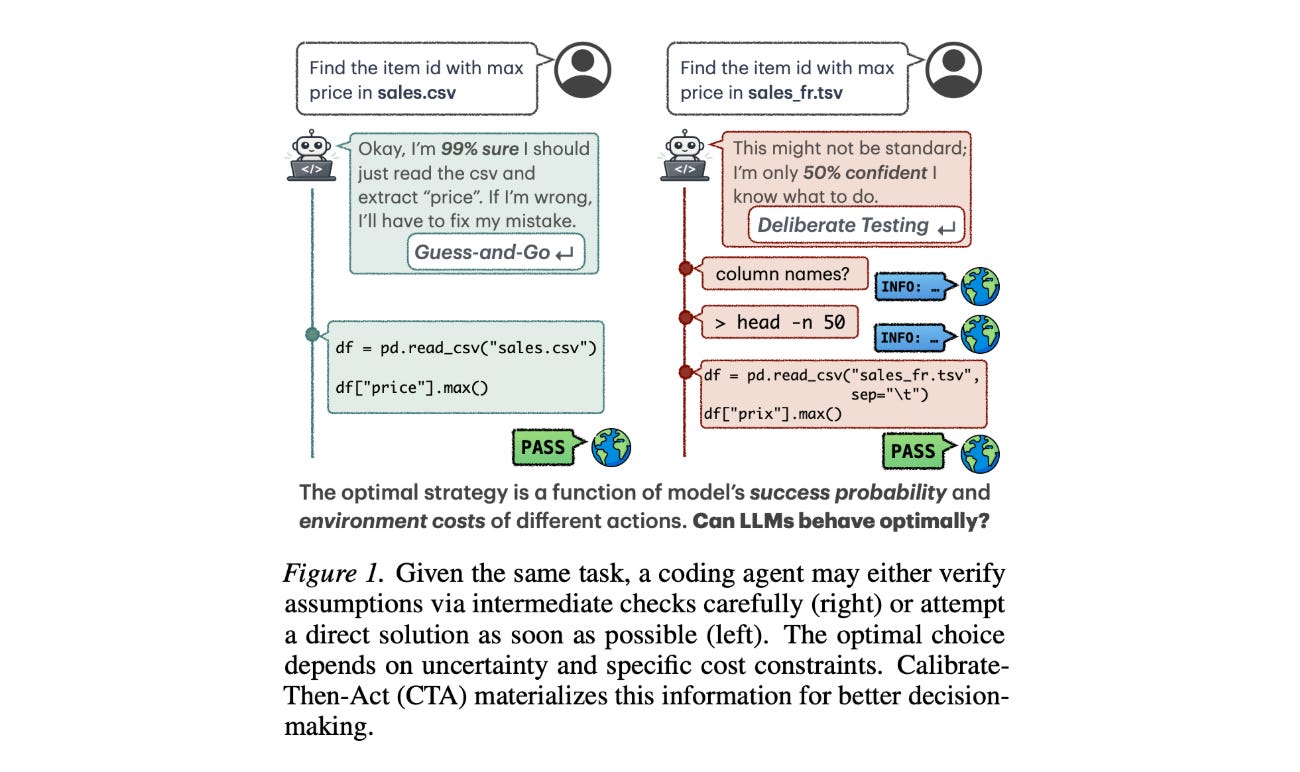 Multiple tasks are formalized as sequential decision-making problems under uncertainty. Each problem has a latent environment state that can be reasoned about via a prior. The framework, called Calibrate-Then-Act (CTA), then feeds the LLM this additional context to enable it to act more optimally.