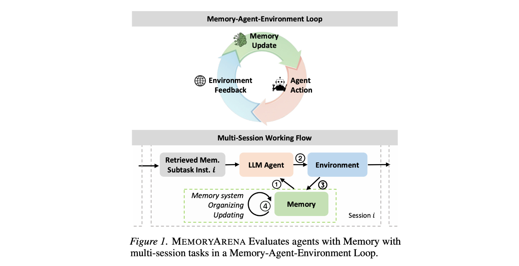 In reality, memorization and action are tightly coupled. MemoryArena is a new benchmark that assesses this setting by testing agents' memory in multi-session tasks that require remembering and using information from earlier sessions to succeed in later ones.