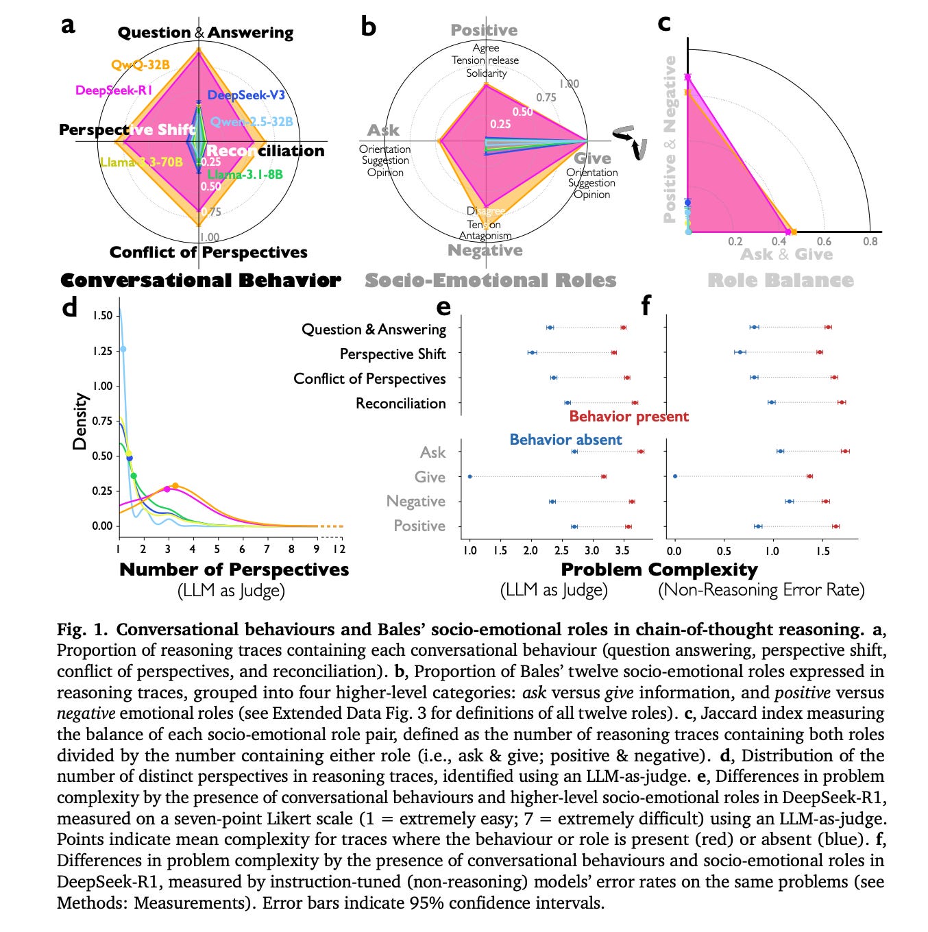 The authors explain that the improvement does not come only from longer computation or chains of thought. Instead, these models simulate internal interactions similar to multi-agent systems, creating what they call a โSociety of thoughtโ.
