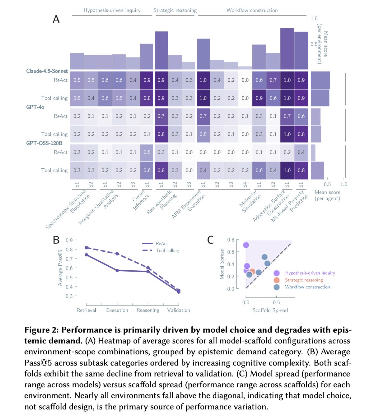 Through large-scale experiments, the authors show that performance is driven almost entirely by the base model rather than agent scaffolding, and that agents often overlook evidence, seldom change their beliefs, and rarely combine different lines of evidence.