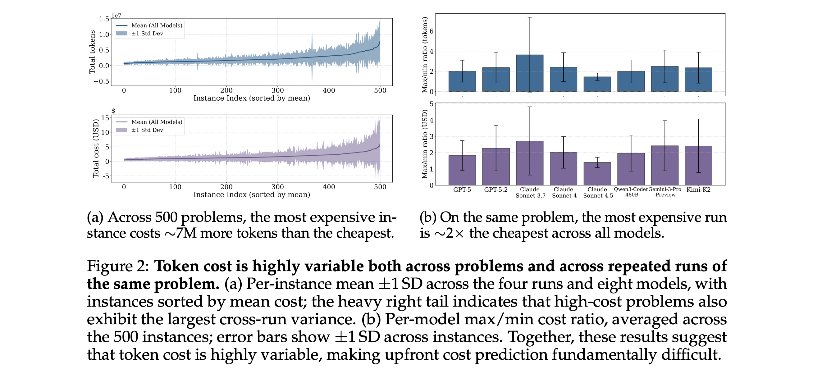 Token usage is highly variable, and multiple runs on the same task can differ by up to 30× in total tokens.