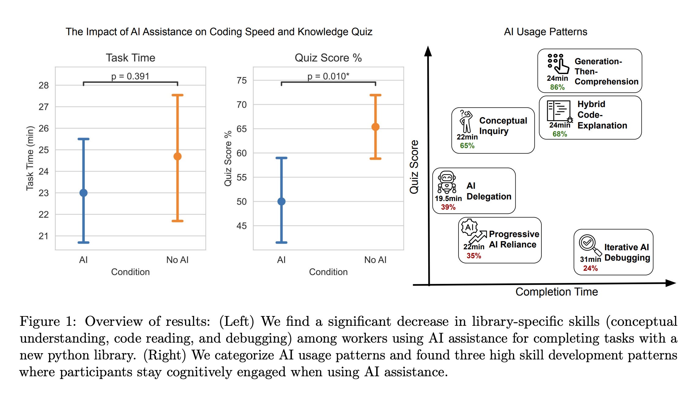 Overall, the study suggests that AI-enhanced productivity is not a shortcut to competence. AI assistance should be carefully integrated into workflows to preserve skill formation, especially in safety-critical areas.