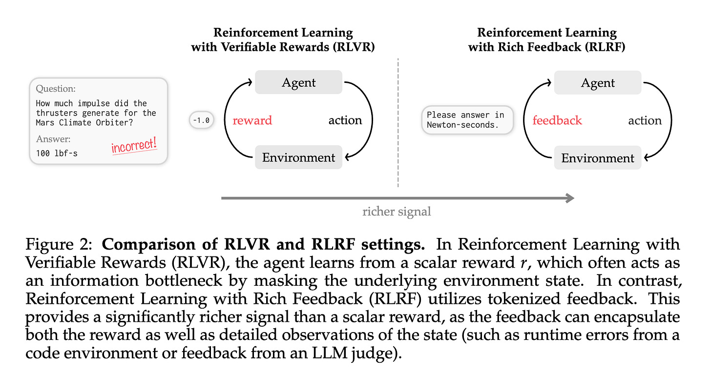 To address this, this research introduces Reinforcement Learning with Rich Feedback (RLRF) and a new algorithm called Self-Distillation Policy Optimization (SDPO).