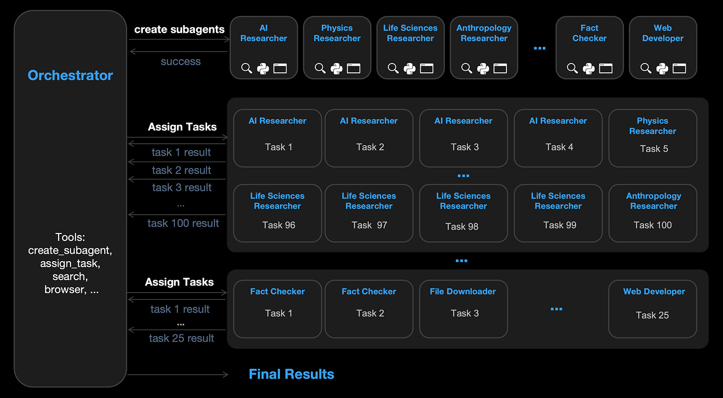 K2.5 comes with advanced agentic capabilities and can self-direct “agent swarms” of up to 100 sub-agents. These sub-agents work in parallel on complex, multi-step tasks without needing manual coordination. This significantly speeds up execution compared to single-agent setups.